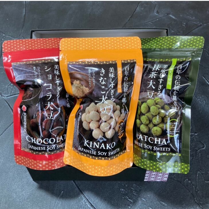 すべて手仕上げでコーティングを施してますので、機械では作れない美味しさとダブルコーティングという独自製法により見た目と美味しさを追求した大豆のスイーツです。